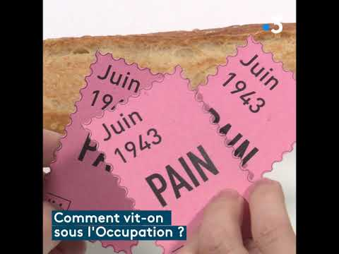 La vie est différente en France suivant la zone dans laquelle on vit jusqu’à la fin de l’année 1942. En zone occupée, la présence allemande modifie l’ambiance des villes qui se couvrent de panneaux en allemand et de drapeaux nazis,tandis que l’horaire des Français est aligné sur le méridien qui passe à Berlin. Le couvre-feu restreint les sorties du soir et le dernier métro passe à minuit moins le quart. En revanche, l’obsession commune à tous les Français, c’est la faim et le froid. En effet, le pillage allemand provoque de fortes restrictions et l’absence des Français retenus comme prisonniers de guerre en Allemagne désorganise considérablement la production économique. Les cartes de rationnement sont instaurées à partir de l’automne 1940 suivant un système qui fournit de1 200 à 1 800 calories par jour et par personne,selon l’âge, les activités et le lieu de résidence : huit catégories ont été fixées. À Paris,avec ses tickets de rationnement,un adulte peut acheter 275 grammes de pain par jour. Par semaine, il peut acquérir 350 grammes de viande avec os, 100 grammes de matières grasses et 70 grammes de fromage. Par mois, ses tickets lui donnent droit à 200 grammes de riz, 500 grammes de sucre et 250 grammes de pâtes. Tout ceci à condition que les produits ne manquent pas. Les Français élèvent des lapins et des poules, accommodent les rutabagas et les topinambours comme ils le peuvent, et sont attentifs à ramasser le moindre mégot. Les bas étant devenus introuvables, les femmes se peignent les jambes,poussant le réalisme jusqu’à dessiner la couture du bas. Par manque d’essence – réquisitionnée pour les véhicules allemands –, les voitures fonctionnent au charbon de bois grâce au gazogène, un appareil simple à fabriquer, avec des matériaux faciles à se procurer, et qui produit un gaz pauvre permettant d’alimenter les moteurs. Les semelles de bois ou de liège remplacent le cuir. Tout est soumis au rationnement, le tabac, la laine... Les Français souffrent de la faim, de la malnutrition et tombent plus facilement malades: le nombre de morts dues à la tuberculose double.Les carences alimentaires ou en vitamines que subissent les enfants affectent leur croissance. Les queues s’allongent quotidiennement devant les magasins et les épiciers, dont les boutiques sont vides mais les arrière-boutiques souvent pleines, en profitent. Pour s’en sortir, les Français pratiquent le marché noir, strictement interdit :dans les rapports de gendarmerie, ce délit figure dans la rubrique « Agissements nuisibles au relèvement du pays ». Les Français qui s’y livrent achètent au prix fort, sans ticket de rationnement, les aliments qui manquent le plus comme le beurre, le café, les fruits ou la viande. Mais tous n’ont pas les moyens nécessaires pour profiter de ce trafic, d’autant que les prix ont connu une hausse considérable. Ainsi, le kilo d’épinards qui était à 2,50 francs en 1940 s’élève à 10 francs l’année suivante dans la ville de Tours. Les allers et retours sont alors fréquents pour trouver du ravitaillement dans les familles qui vivent à la campagne. En effet, si les villes souffrent de la faim, les campagnes, elles, ont accès à une alimentation suffisante et variée. De plus, d’un département à l’autre, les produits circulent mal. La ration quotidienne moyenne est alors estimée à 1 500 calories, et assurément moins en ville. À titre de comparaison, un rapport de l’OCDE daté de 2005 estime la consommation actuelle moyenne en France à 3 654 calories. Pendant la guerre, les Français souffrent également du froid, d’autant que les hivers sont rigoureux, surtout en 1940-1941.